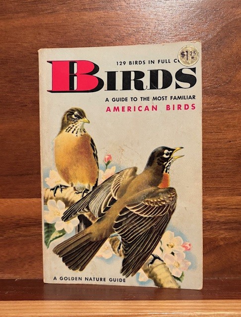As I went back to mowing, I startled a moth in the grass, kicked up into flight from the noise of my mower. Out of nowhere, a bird swooped down and caught the moth in midflight. The bird stayed around for about 20 minutes, catching and eating every moth that was forced into flying from my mowing. The bird seemed to know I would send moths into the air. When I was done with the yardwork, I went to my standby bird book used in eighth grade: “Birds-A Guide to the Most Familiar American Birds” by Golden Press, 1956.