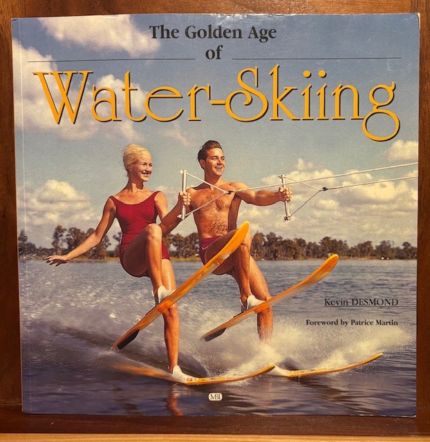 While I have shared stories, and few old pictures, this is a blog about books. And of course, I have a book or two. The first is “The Golden Age of Water-Skiing” by Kevin Desmond, 2001. This great cover photo is a couple giving the “Skiing Salute”, each holding a ski in the air.