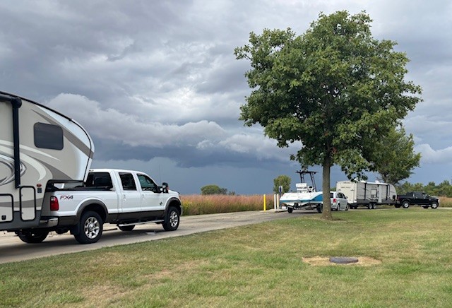 Recently, I went camping with my son and his family. We all drove to Clinton Lake (about an hour away). My son towed his camper, his wife towed their boat, and I towed my 5th wheel. We had a caravan of sorts.