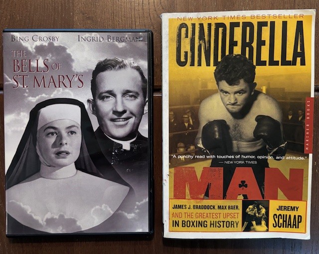 I move to “The Bells of St. Mary’s” 1945, with Bing Crosby and Ingrid Bergman. There is a bit of a power struggle between Father Charles O’Malley and Sister Mary Benedict as they try to save their church school from being condemned and torn down. In the movie, Sister Mary Benedict teaches a young boy to box (who rings her bells with an errant swing!). There is a great relationship between Father and Sister as they navigate the goals of the church.