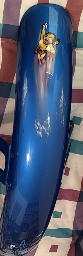 Phil had that cartoon tattoo painted onto the front fender of his bike. It is constantly staring at me, waiting, as the last piece of this puzzle to be put back on the motorcycle.