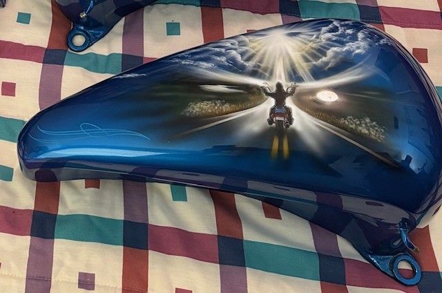 Phil passed before he was able to see this bike put back together. But he did see the new paint job, along with the artwork. He could picture in his mind what the final product would look like. I believe he also knew that I would struggle to get this puzzle put back together-even with my mechanically savvy son.