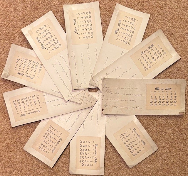 These remaining pages were given to me by my mother-in-law, and were my wife’s grandmother’s. She was born in 1900. There is a handwritten poem next to each month.